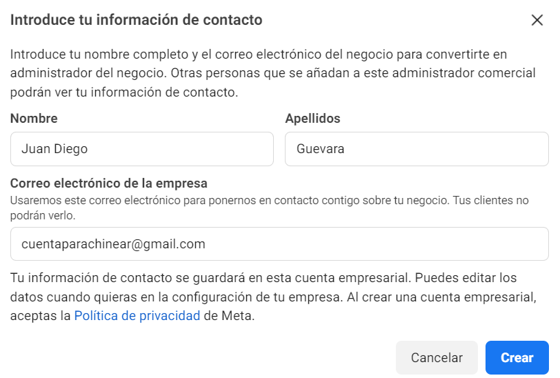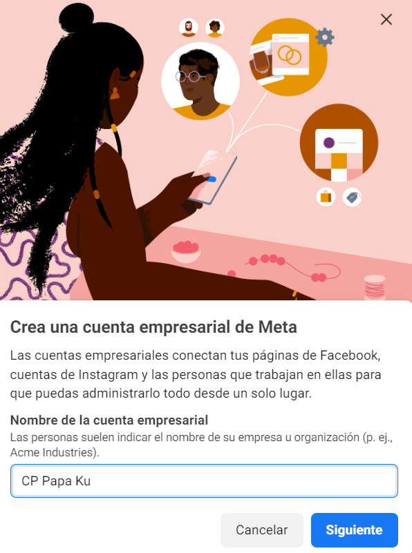 3. Crea un nombre para tu cuenta empresarial