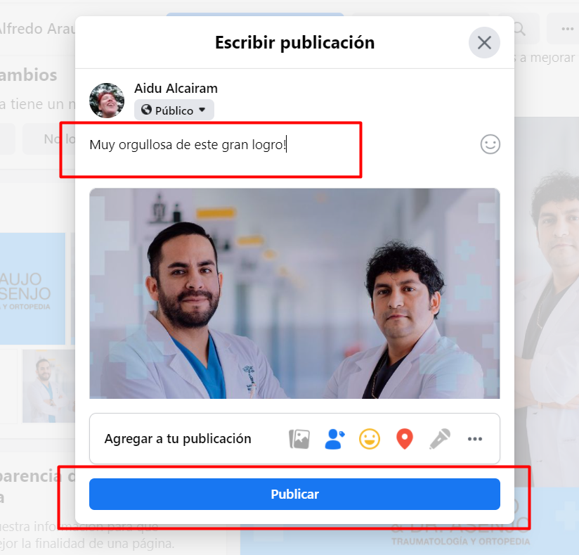 El otro paso es compartir la publicación en tu perfil con un texto donde presentes a tu nuevo negocio, para que todos tus amigos y familiares lo puedan ver. De esta manera, te felicitarán y reaccionarán a la publicación (las reacciones son los que nos interesan ahora).